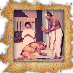 Many years later, Punithavathi meets her husband, but she becomes shocked when her husband comes forward to prostrate before her, claiming that she is a miraculous person. The devastated Punithavathi, begs the Lord to shelve her youth and beauty. Instead of walking on her foot, she reaches Kailash on her head to meet Lord Shiva. Amazed with her devotion, the Lord calls her “Oh Mother” and names her ‘Mother of Karaikal’ (Karaikal Ammaiyar). Lord Shiva makes her wishes come true by dancing the Thandavam with His consort, Parvathi, at Thiru Alangadu. She remains there perennially under His feet.